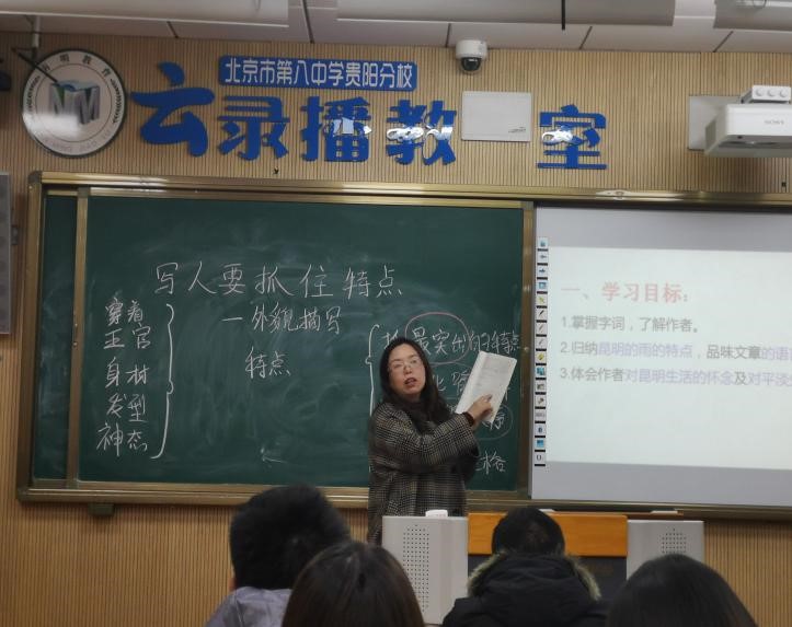 第一堂课由北京八中的李秋梅老师授课,李老师的授课内容为八年级语文课程《昆明的雨》。李老师以提问作为课程导入,紧接着引导员工学习字词、了解作者、明确文中“雨”的特点、领略作者汪曾祺的语言风格。在课堂上,李老师与员工积极互动,悉心指导员工诵读课文,画出重点句子进行深入分析,最后明确汪曾祺散文“直白、质朴、富有生活气息”的语言特色和作者的思想情感。李老师教态自然亲切,教学思路清晰,环节流畅。同学们专心听讲,积极发言,师生互动良好,课堂气氛活跃,语文学科核心素养得到了很好的体现。