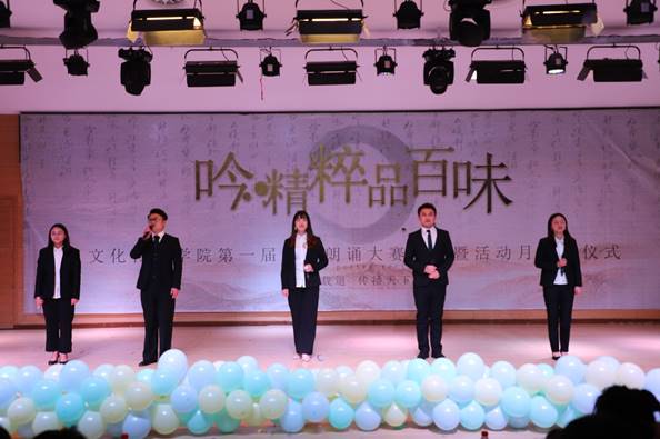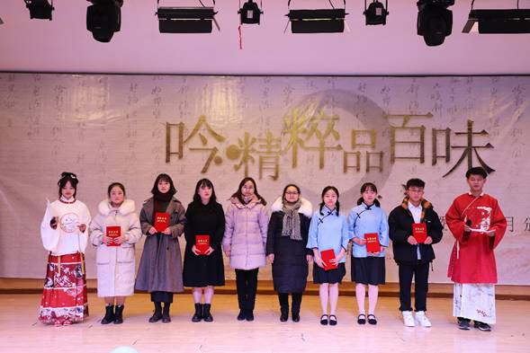 12月18日晚,williamhill英国威廉希尔“吟精粹 品百味”诗文朗诵大赛决赛暨活动月颁奖仪式在永籁楼音乐厅举行。经过初赛的角逐,共有10名选手入围决赛,决赛现场气氛热烈,同学们热情高涨。参赛选手或个人或组合,以饱满的激情、激昂的语言、大方得体的姿态来展现自己的实力,在场的老师和同学深受感染,现场掌声和喝彩声不断。
