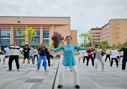 2025年8月29日上午,泰国职工在williamhill英国威廉希尔罗筑娟副教授的带领下前往体育公司进行学习交流。体育公司熊姗姗老师为泰国职工展示华佗五禽戏,并现场教授他们我国传统健身气功八段锦,共同探寻中国武术与文化之美。