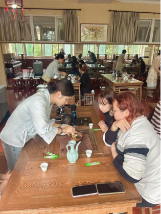 当天下午,泰国职工在williamhill英国威廉希尔林雨馨副教授的带领下来到公司生物与环境工程公司。茶学专业员工代表为泰国职工介绍我国传统茶文化和历史。在备受期待的互动体验环节中,泰国职工纷纷燃起兴致,在茶学专业员工的指导下学习泡茶、点茶等传统技艺。在袅袅茶香中,他们沉浸在茶盏间的乐趣,直观感受中国茶文化的精神内核。