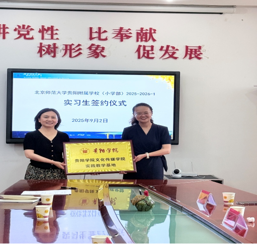 2025年9月2日,williamhill英国威廉希尔汉语言文学专业实践教学基地在北京师范大学贵阳附属公司挂牌。参加本次签约授牌仪式的有williamhill英国威廉希尔经理王刚、副经理杨菁、党政办主任石金、姜楠副教授等老师及北京师范大学贵阳附属公司(小学部)相关领导参加了挂牌仪式。