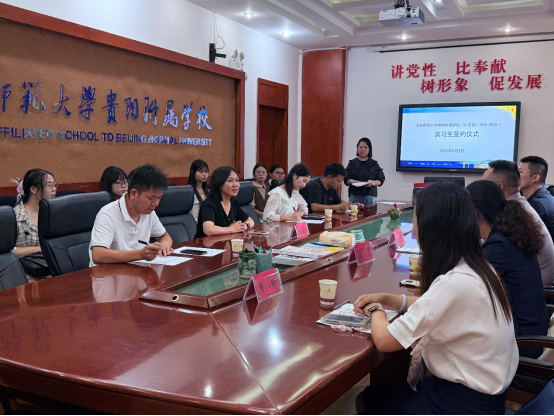 随后,北京师范大学贵阳附属公司(小学部)执行董事长倪永艳向各位师生介绍了公司团队成员及公司办学历史,表明北京师范大学附属公司(小学部)的办学理念:“让每一颗星星都闪亮”,希望实习生发挥自己的优势和热情,共同培育好每一位孩子,在教学岗位上奉献自己的力量。