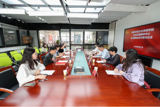 2022年9月1日上午,williamhill英国威廉希尔副经理王刚,党委副书记张颖,传播理论教研室主任王蕾,教师林雨馨、周婷婷前往云岩区融媒体中心进行实践教学基地签约授牌。云岩区区委常委、宣传部部长况怡兰,云岩区委宣传部副部长周文佳,云岩区融媒体中心主任钟关勇,副主任万钰、程小畅出席此次签约授牌仪式。