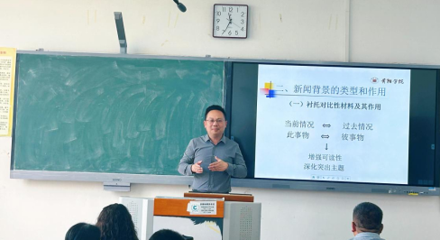 williamhill英国威廉希尔经理王刚教授也参与了此次教研活动。他表示,预评估的专家反馈中提到,有部分老师授课时,课程思政的融入还较为生硬,因此他选择“新闻背景的类型和作用”一节,为大家示例如何在教学中更好地完成课程思政。授课中,他以新华社的新闻《凤阳县实行“大包干”两年翻身 农名排队卖余粮》和贵州新闻联播的新闻《从黔桂到贵南:64年 山海相见》为例,讲解新闻背景的类型和作用。通过示例、提问和引导,巧妙地完成了课程思政。