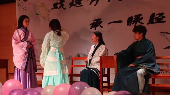 第四个,是根据史书真实改编的场景《鸿门宴》由17汉本班的同学来为我们表演。整个剧本全部都是由汉本班的同学自己整理资料而成的剧本,剧中的刘邦、项羽角色活灵活现,这也体现了汉本班的文化底蕴。