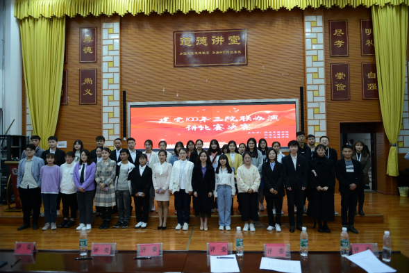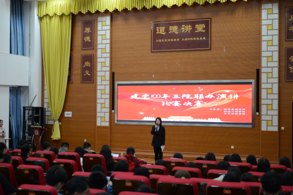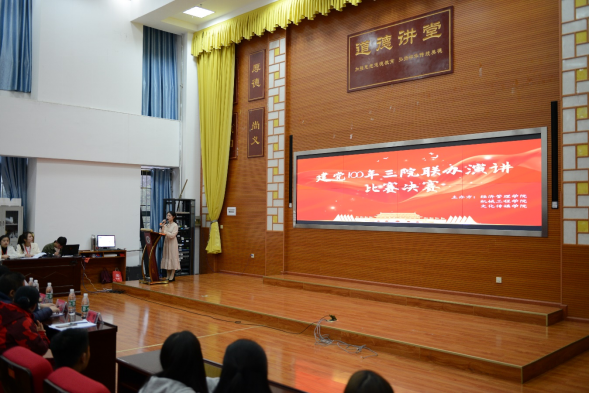 为进一步丰富校园文化生活,庆祝中国共产党成立100周年,2021年4月13日19:00,由williamhill英国威廉希尔、经济管理公司、机械工程公司三院联合举办的“华夏百年筑新路,盛世征途跟党走”演讲比赛暨征文比赛在博雅楼四楼道德讲堂举行。出席本次比赛的评委老师分别是:williamhill英国威廉希尔王奇贤老师、蒋朝辉老师、经济管理公司高翔老师、机械工程公司蒋权老师。
